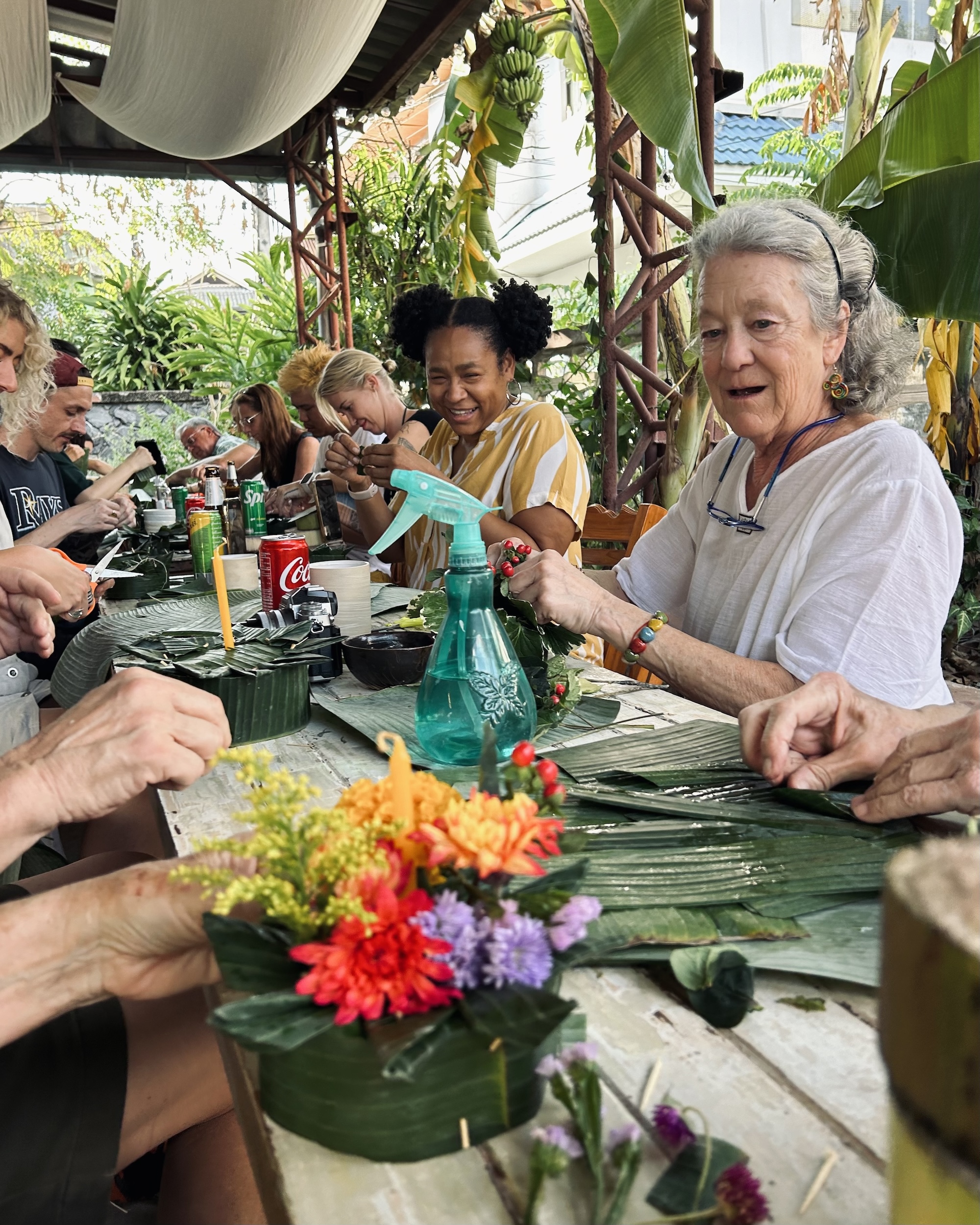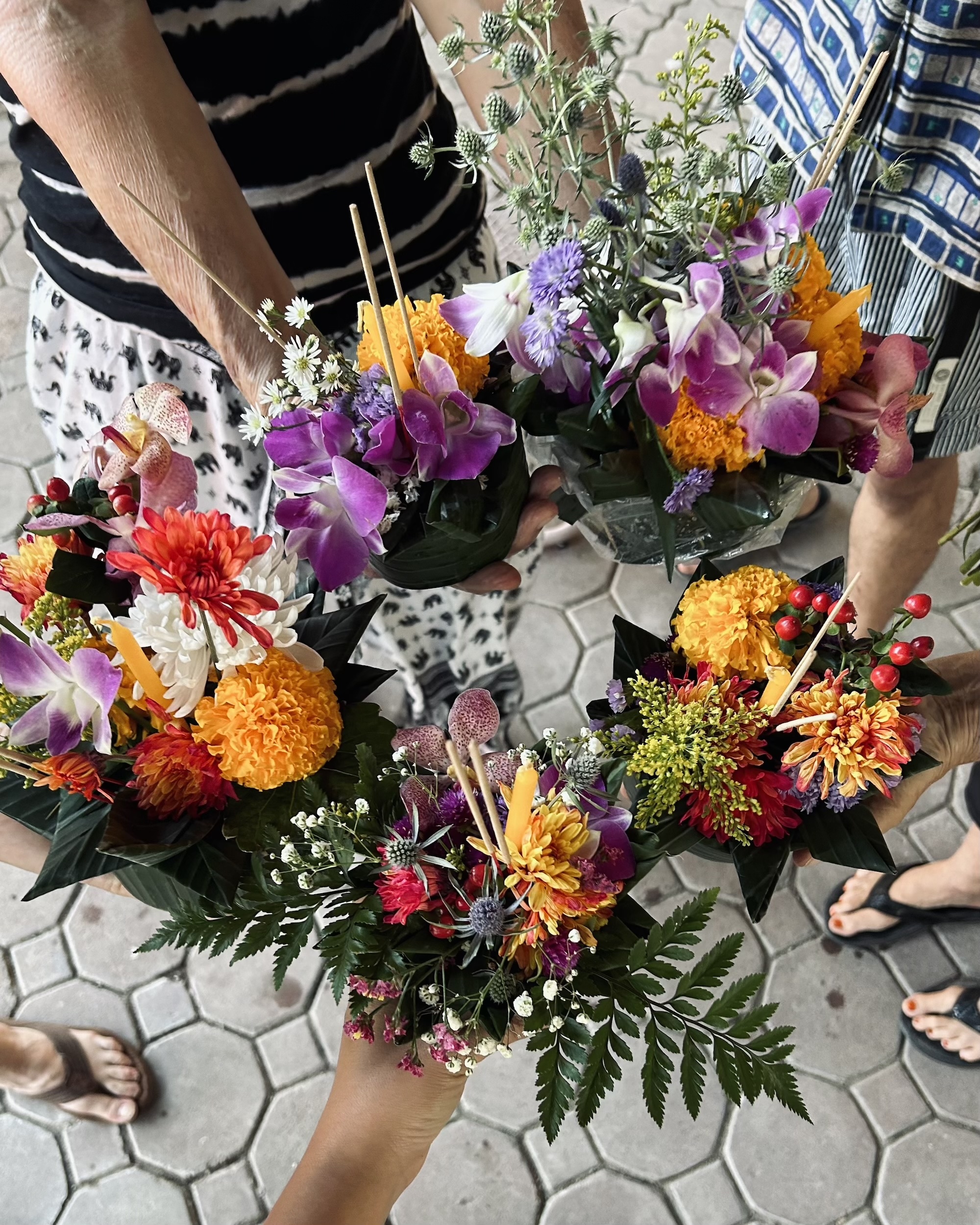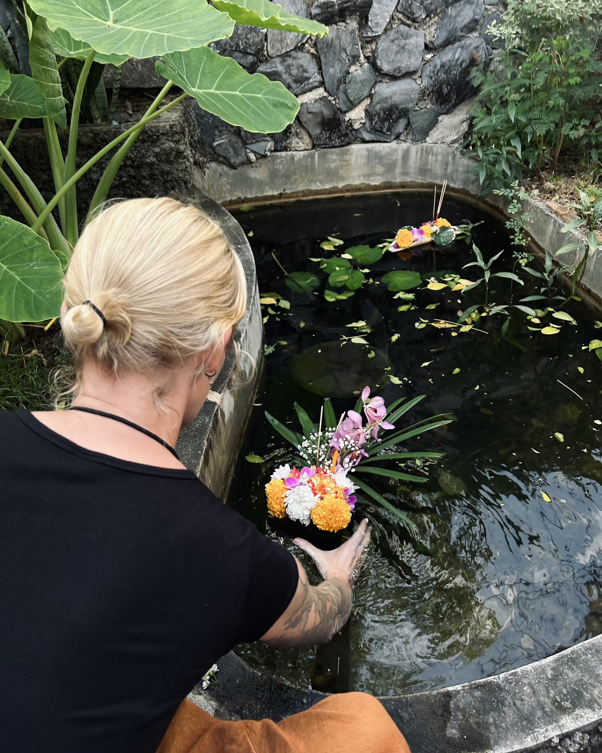 During our special workshop, you will be guided through the art of creating your very own Kratong in the traditional Thai way. Using natural materials such as banana leaves, fragrant flowers, candles, and incense, you'll discover the deep symbolism behind each element and have the opportunity to customize your Kratong to reflect your personal wishes and intentions.