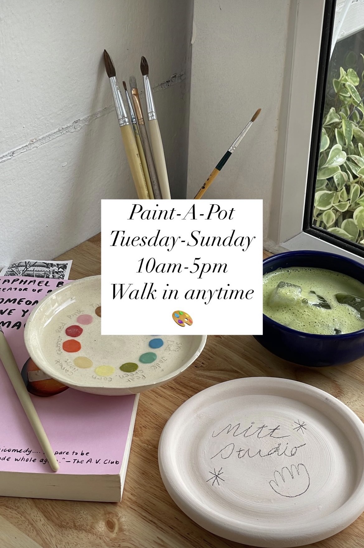 Pot starts at 200 THBWe serve you tableside, and clean up the mess when you're done. Perfect place to create and hang out with friends or simply absorb your own creativity. The experiences are fully self-guided. Pick one of our studio-made pots (we also have ashtrays, mugs, ring dishes, and more). Paint it and then leave it with us for a final firing.